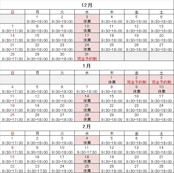 営業カレンダー