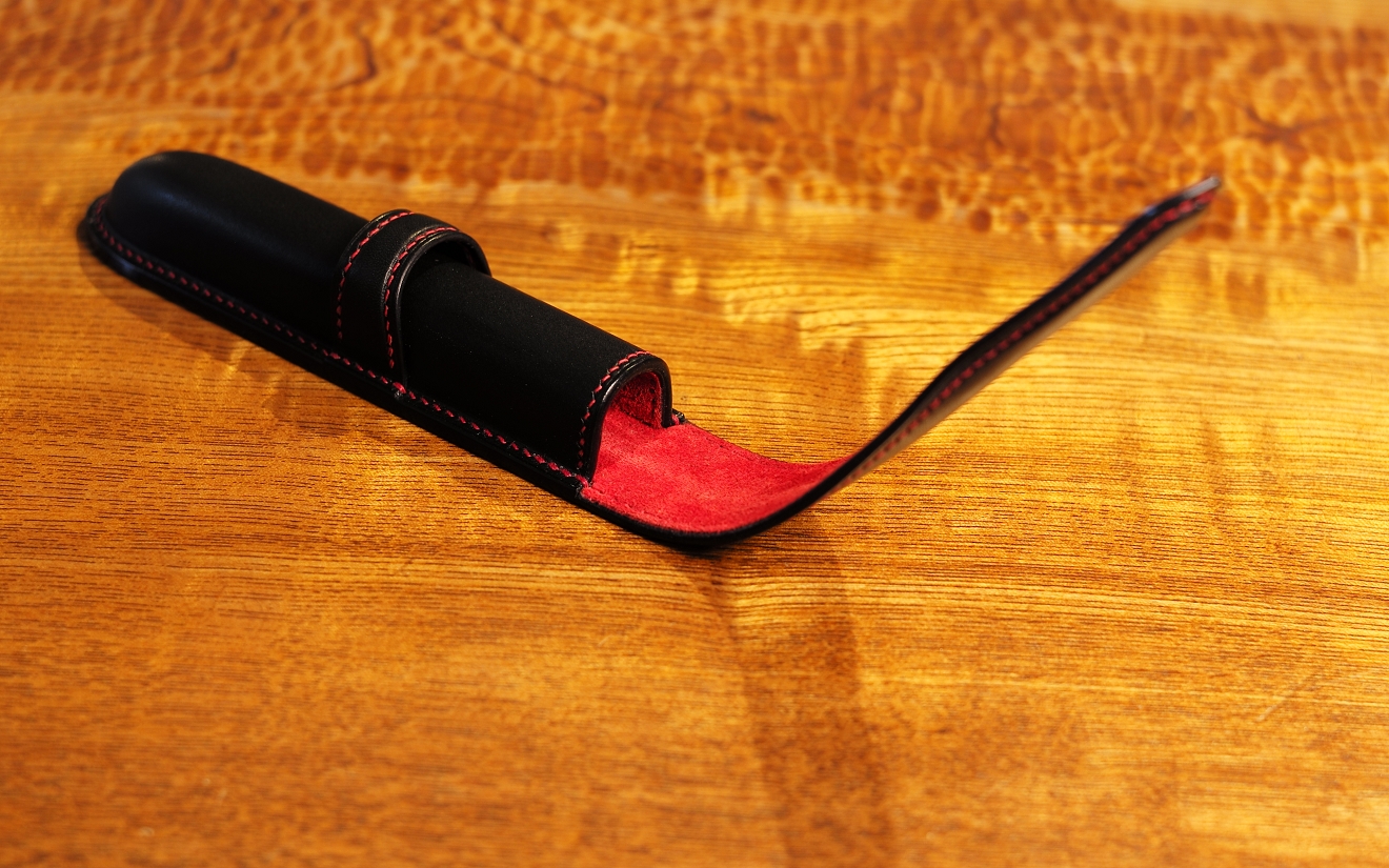 ひとつひとつ違った設計で作ったお客様のオーダー万年筆に合わせ、木型から作成、革を絞り出して仕立てる万年筆 1本挿しケース。