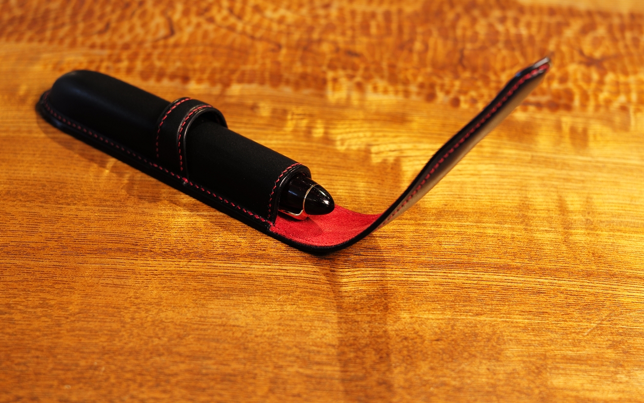 立体的で、しっかりとした作りで、さらに内張りには万年筆にやさしいスエードを使った贅沢な仕様です。