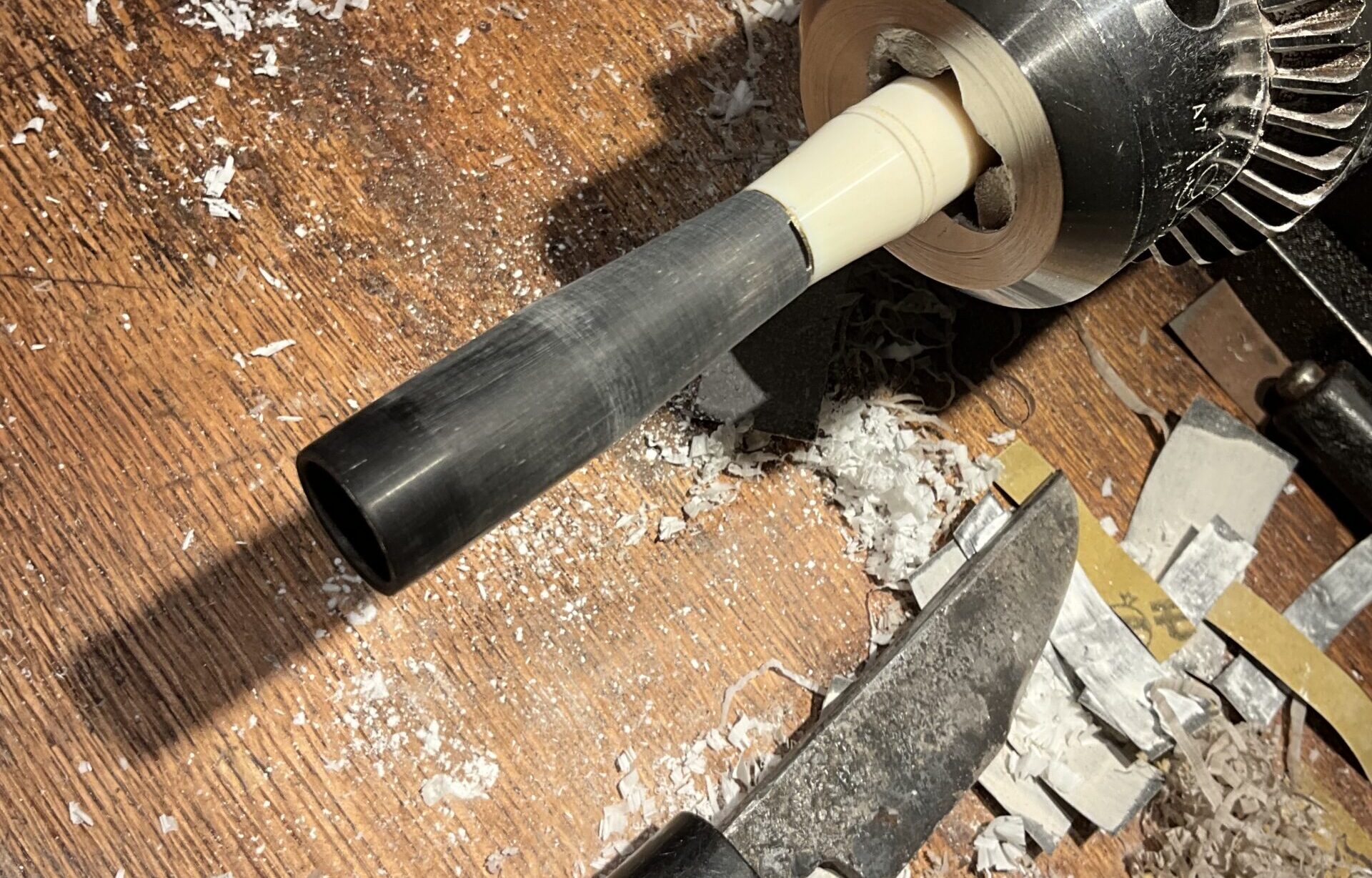 ろくろを使い、万年筆の軸の形を整えネジを切る様子や、鋼の刃物を研いで減っていくさまなどを熱心にご覧くださいました。